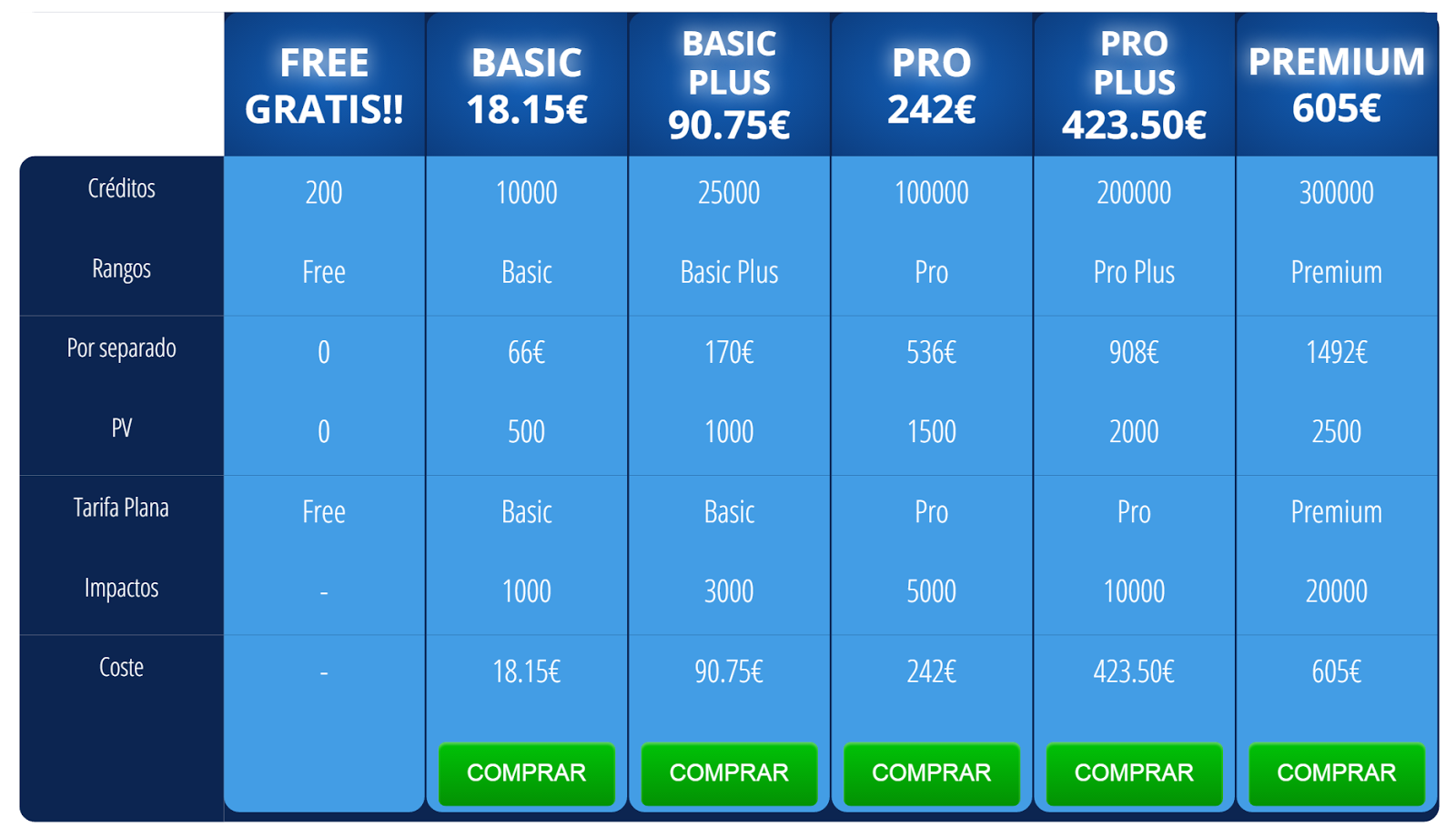 - Unos paquetes llamados Publipack pensados para nosotros los usuarios que somos los que vamos a estar viendo los anuncios, son como unas membresias para ascender de nivel, se pueden conseguir comprándolos con nuestro dinero o con nuestras ganancias, también tiene unos paquetes parecidos que nos subirán de nivel pero que los podemos adquirir por días y probarlos sin ningún problema, estos se pueden adquirir desde 0,20€ al día.